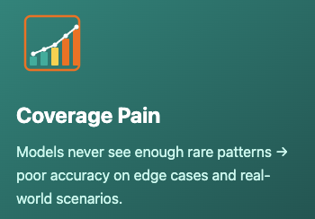 - Low coverage of rare or dangerous patterns